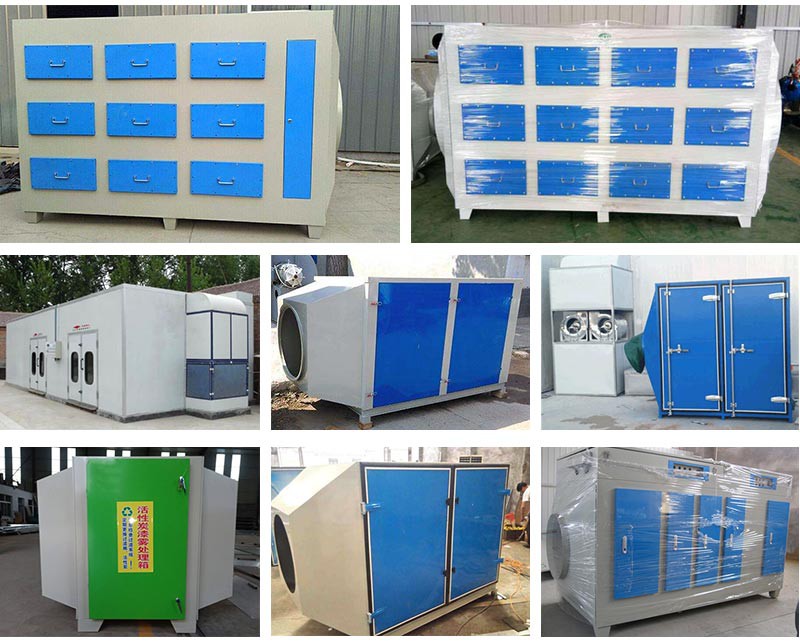 废气;主要用于制药、冶炼、化工、机械、电子元件生产、电池(电瓶)生产、电器、涂装、制鞋、橡胶、塑料、酸洗作业车间、印刷及环保脱硫、实验室排风、医药生产厂、涂装车间、食品及酿造、家具生产、除臭和各种工业生产车间产生的有害废气的净化处理。活性炭环保箱可用于喷漆室、烘干室和喷、烘两用。