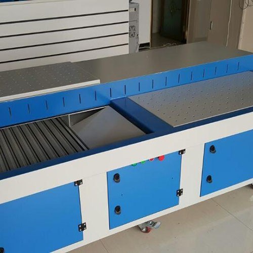 打磨除尘设备工作台设有二次除尘。工作台上部设有送风口,侧部的下部有吸风口,完全按含粉尘气流运动自然规律运动。