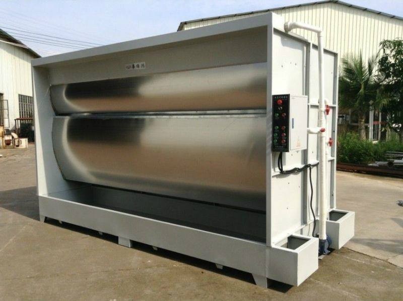 水帘柜特点是能把喷漆时剩余的漆粉直接打在水池里或水帘面上,而喷漆时产生的气味及未吸附的少量漆粉通过多层水帘幕过滤后经排风机排到喷漆房外,从而起到净化喷漆工作环境及保护人身健康的作用,又能使喷漆的工件表面增强光洁度。